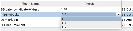 The Plug-ins Manager pre-selects by default the plug-in's latest version. To change the version or to see the available versions, double-click on the cell from the "Version" column. The cell will then display all the available plug-in versions which you can then choose from.